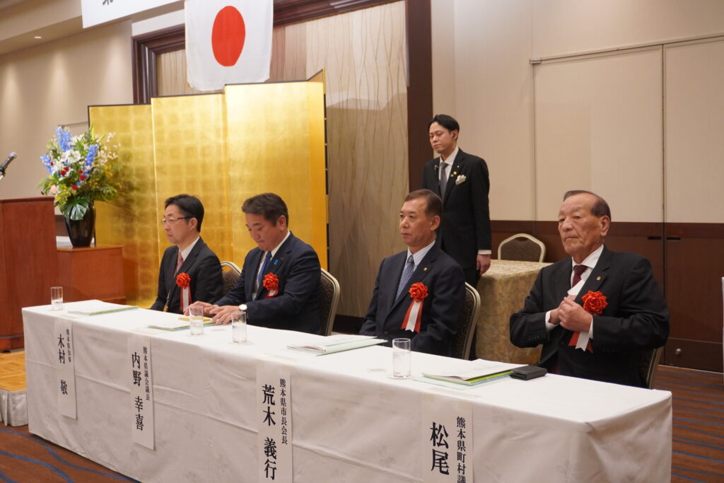 熊本県町村会は3月25日(水)、熊本市のホテル日航熊本で第79回定期総会を開催しました。県内31の町村長全員が出席し、地域からの切実な声をまとめた国や県への要望・決議を採択しました。