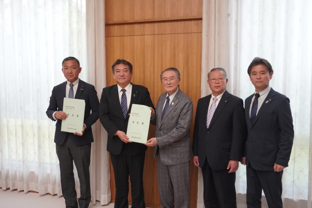 これに先立ち、県議会にも、竹﨑会長と副会長2人が内野議長、橋口副議長に面会。同様の要望・決議と特別要望を手渡しました。